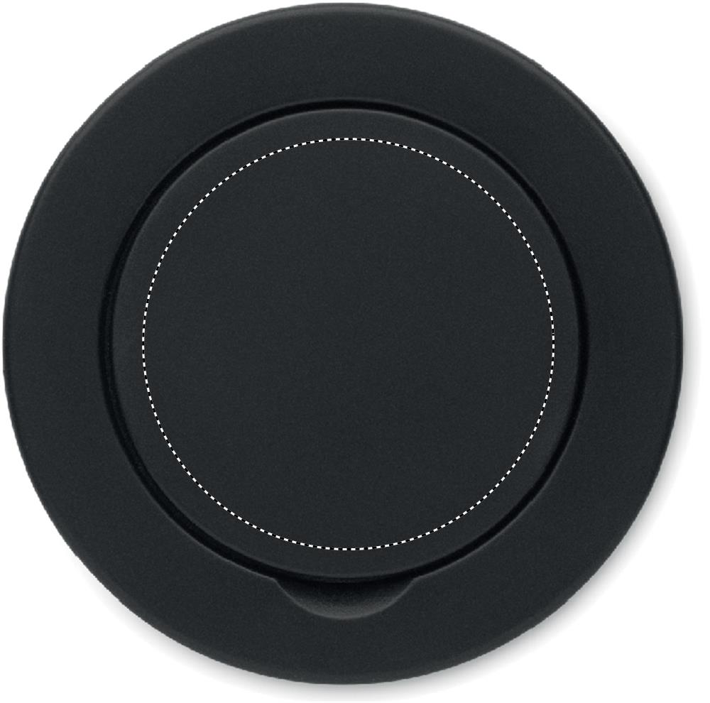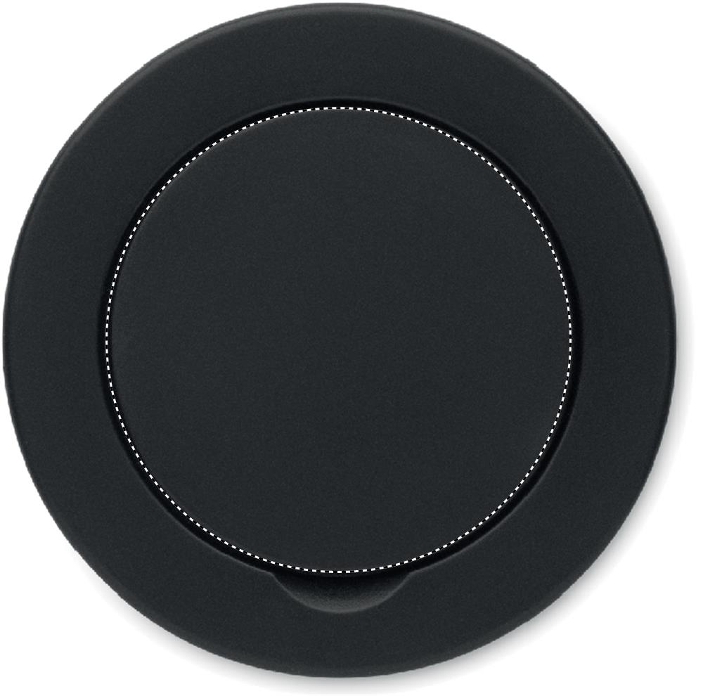 Magnetische telefoonhouder en standaard van gerecycled ABS. Inclusief extra metalen ring voor niet-magnetische telefoons.