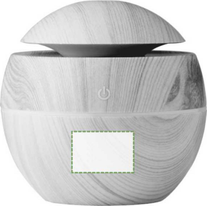 ABS luchtbevochtiger met houten look. Met van kleur veranderende LED-verlichting. Voor ruimtes tot 25m2. Geleverd zonder vloeistof, voeg je eigen water of geur toe. Twee sponzen meegeleverd voor betere prestaties, één geïnstalleerd en één navulling. Individueel verpakt in een bruine kartonnen doos.