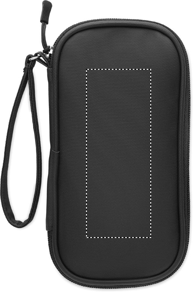 Tech organizer etui van 600D RPET polyester met PU-coating.