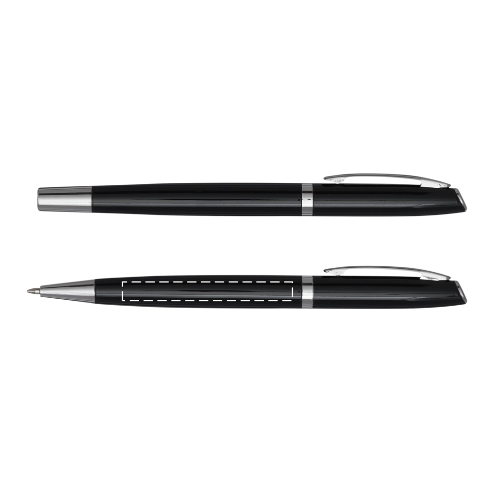 Pennenset ALPHABET bestaande uit een zwartschrijvende balpen en rollerball. Samen verpakt in een geschenkbox.