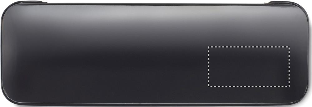 Aluminium schrijfset bestaande uit een balpen met drukmechanisme en blauwe inkt en een vulpotlood. In een bijpassend metalen doosje.