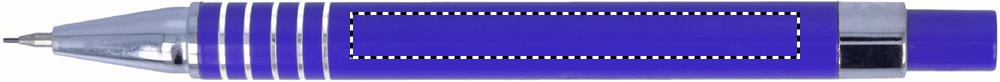 Aluminium schrijfset bestaande uit een balpen met drukmechanisme en blauwe inkt en een vulpotlood. In een bijpassend metalen doosje.