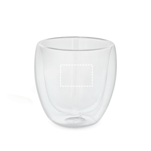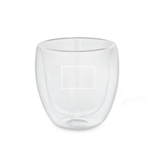 Borosilicaatglas glazen beker met luchtgeïsoleerde dubbele wand en inhoud tot 220 mL. Geleverd in een personaliseerbare geschenkdoos. ø80 x 86 mm