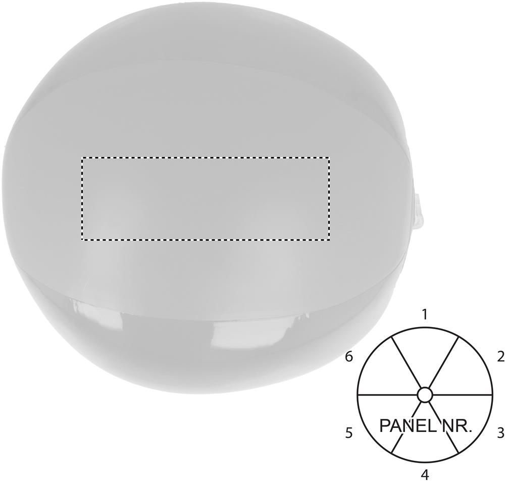 Opblaasbare strandbal met transparante vlakken. Opgeblazen: Ø24cm