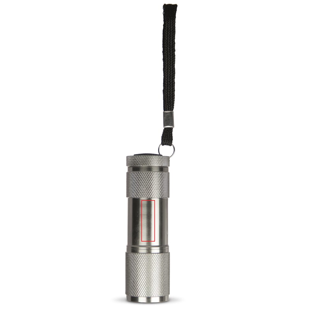 Aluminium LED zaklamp die aan te zetten is door middel van drukknop en is voorzien van een koord. Artikel wordt geleverd inclusief geschenkverpakking en batterijen.
