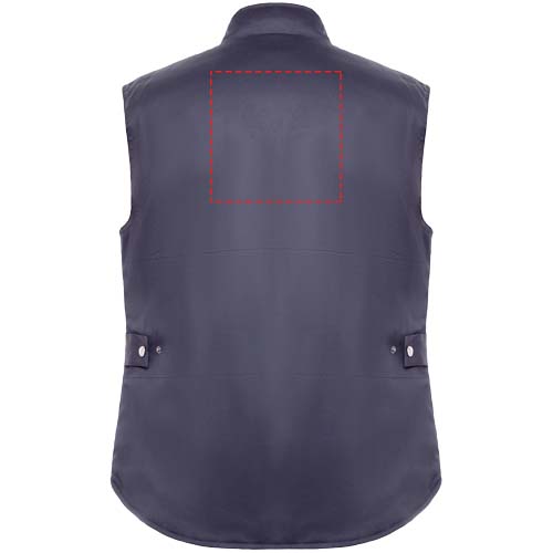 Werkvest met meerdere zakken in een tweekleurige combinatie, met hoge kraag. Rits aan de voorkant met klittenbandsluiting. Windbreakers in manchetten. Buitenvak voor je telefoon aan de rechterkant, met flap en klittenbandsluiting. Twee geplooide voorzakken met flap en klittenbandsluiting. Twee pennenvakken. Binnenzak met klittenbandsluiting. Zak met rits. Drop tail. Automatische aanpassing. Contrasterende schouderstukken en details.