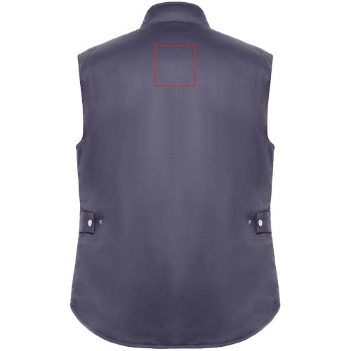Werkvest met meerdere zakken in een tweekleurige combinatie, met hoge kraag. Rits aan de voorkant met klittenbandsluiting. Windbreakers in manchetten. Buitenvak voor je telefoon aan de rechterkant, met flap en klittenbandsluiting. Twee geplooide voorzakken met flap en klittenbandsluiting. Twee pennenvakken. Binnenzak met klittenbandsluiting. Zak met rits. Drop tail. Automatische aanpassing. Contrasterende schouderstukken en details.