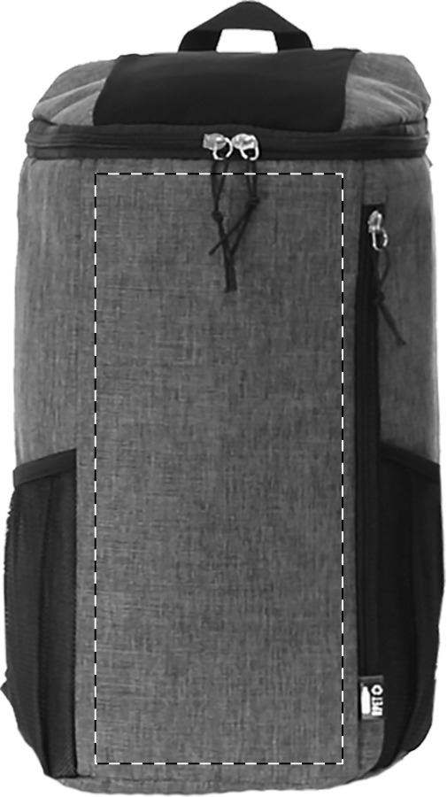 RPET-koelrugzak met hoofdvak met ritssluiting en PEVA-vulling, zijvakken van gaas en gewatteerde schouderbanden. Met kenmerkend RPET-label. 600D RPET-polyester.
