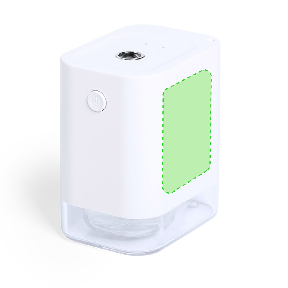 Automatische alcohol dispenser voor hygiëne en huidreiniging, met infrarood bewegingssensor en led-indicator. Compact formaat en discrete matte witte afwerking, bijzonder geschikt voor tampondruk, met 45 ml statiegeld dat gemakkelijk hervulbaar is (alcohol niet inbegrepen), plus filter en vervangende metalen veer.1800 mA lithium-ionenbatterij, met elektronisch omzettingsvermogen ≥ 90%. Oplaadbaar via 1 meter lange USB type C kabel in bijpassende kleur.Gepresenteerd in een aantrekkelijke design doos. Engelse en Spaanse handleiding beschikbaar.