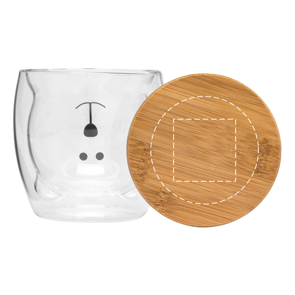Glas BAMBOO BEAR, dubbelwandig: bamboe deksel met siliconen afdichtring, transparant, temperatuurbestendig, berengezichtsvorm, inhoud ca. 250 ml