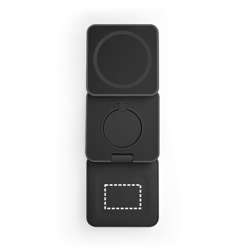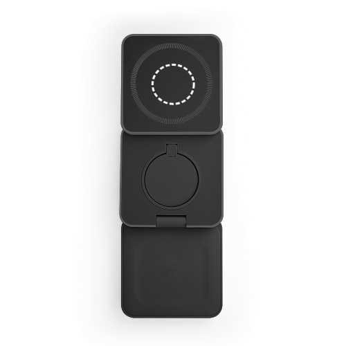Supersnelle, opvouwbare 4-in-1 draadloze magnetische oplader waarmee je tot wel drie apparaten tegelijk draadloos kunt opladen - smartphone, oordopjes en smartwatch. Een ideale oplossing voor zowel gebruik op kantoor als standaard, maar ook voor onderweg, met alles wat je nodig hebt in één product.Materiaal: Gerecycled ABS (100% rABS)Ingang: USB-C (27 W)Vermogen draadloos opladen: smartphone (15 W), hoofdtelefoon (5 W) en smartwatch (2.5 W) (alleen Apple Watch)Inclusief: extra magnetische grip, USB-A/USB-C-kabelVerpakking: geschenkdoos van gerecycled kraftpapier Gevouwen: 70 x 70 x 25 mm | Box: 110 x 90 x 36 mm