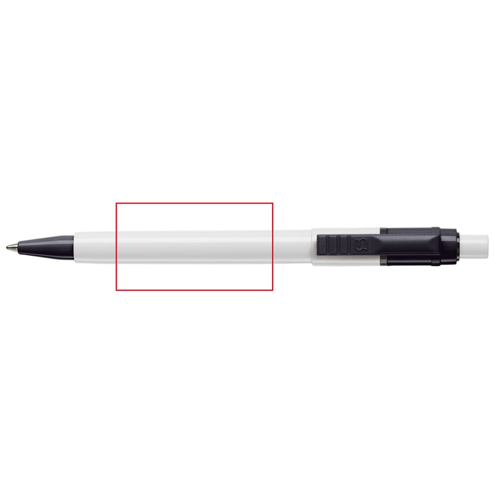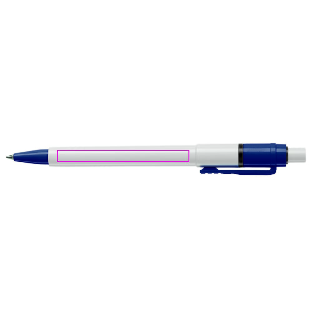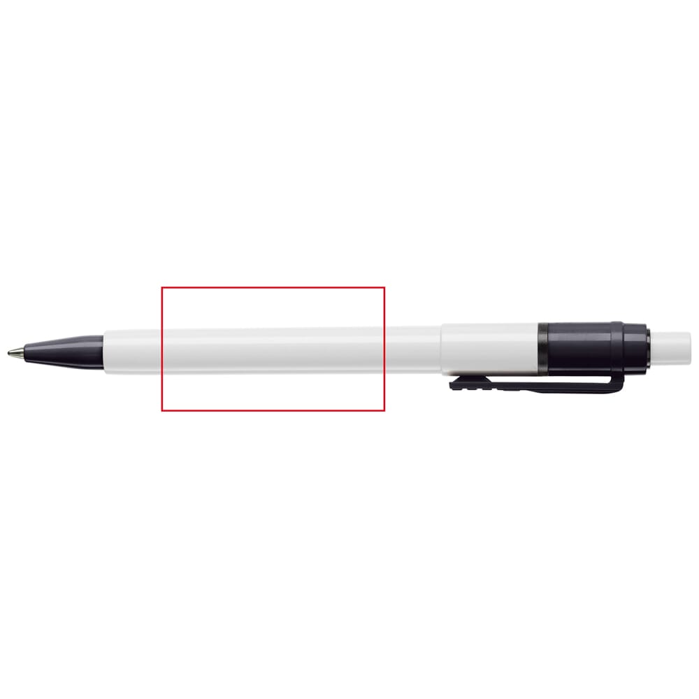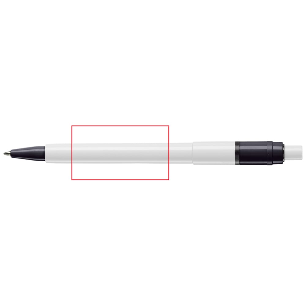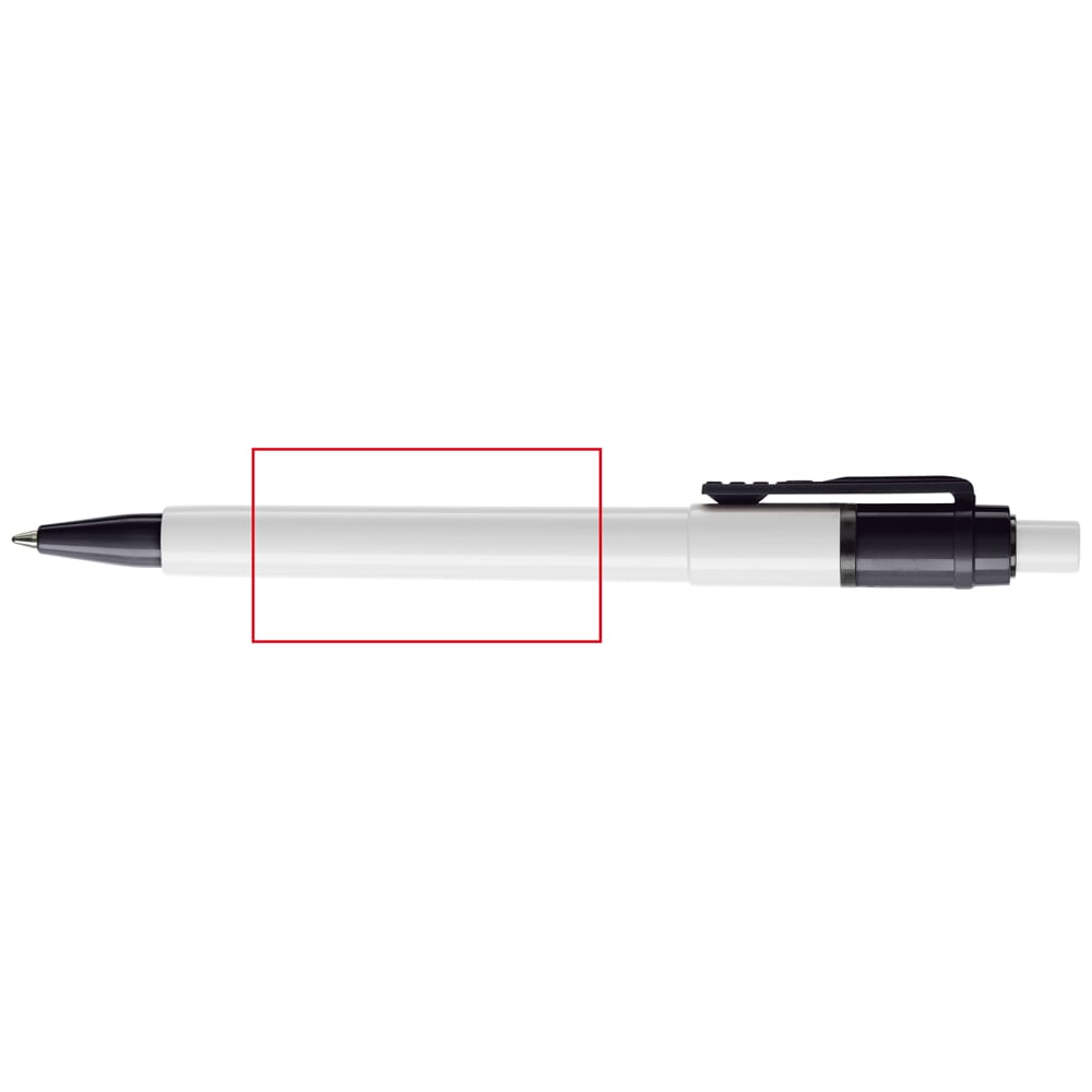 De Baron Colour balpen met een witte barrel en drukker en met een gekleurde clip en tip. De vulling is een synthetische Jumbo vulling en bevat blauw schrijvende inkt. Het bevat een drukker mechanisme en is gemaakt van ABS kunststof. De pen is geproduceerd in Europa. Kleur combinaties voor deze pen zijn mogelijk vanaf 5.000 stuks.