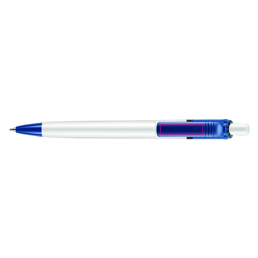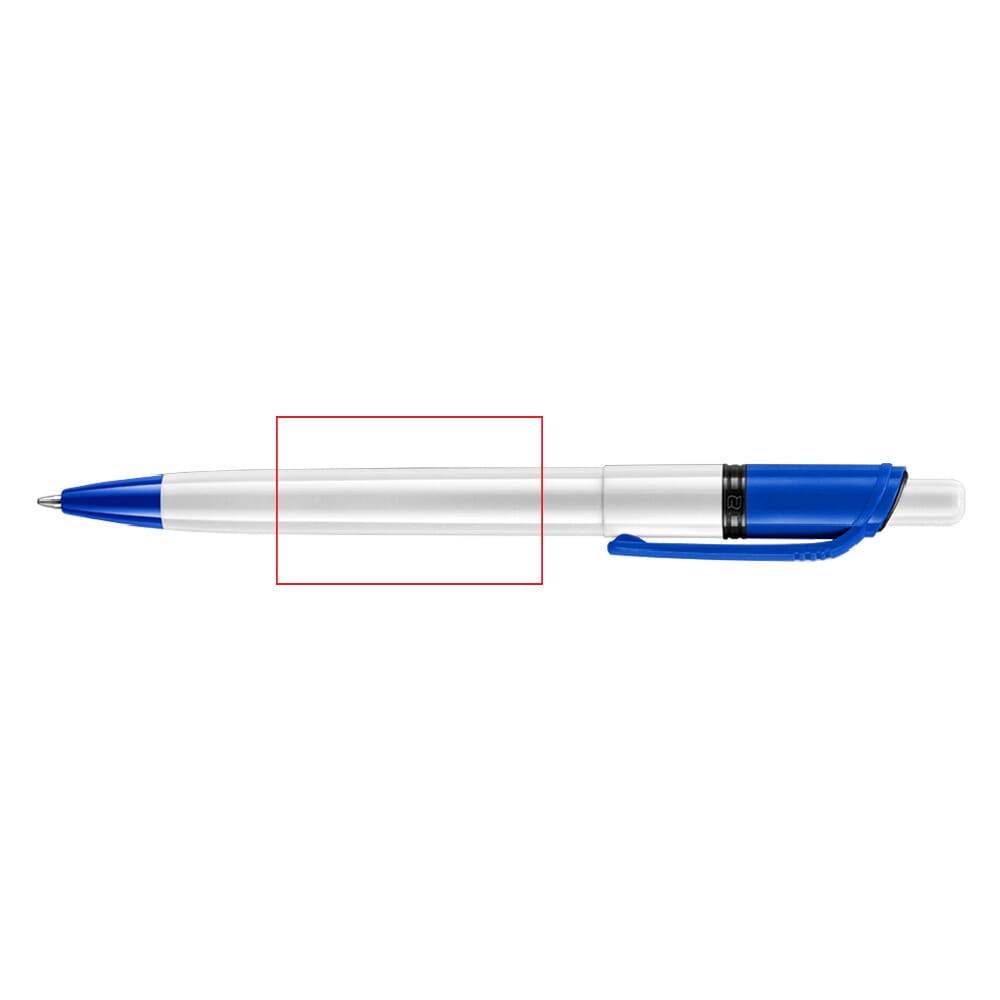 De Ducal Colour balpen is een witte hardcolour bal pen met gekleurde onderdelen en een zwarte ring. Bevat een X20 vulling met blauw schrijvende inkt. De pen heeft een drukmechaniek en is gemaakt van ABS kunststof. Geproduceerd in Europa. Kleur combinaties voor deze pen zijn mogelijk vanaf 5.000 stuks.