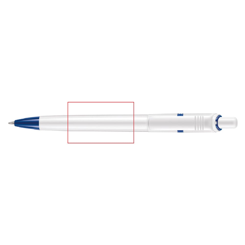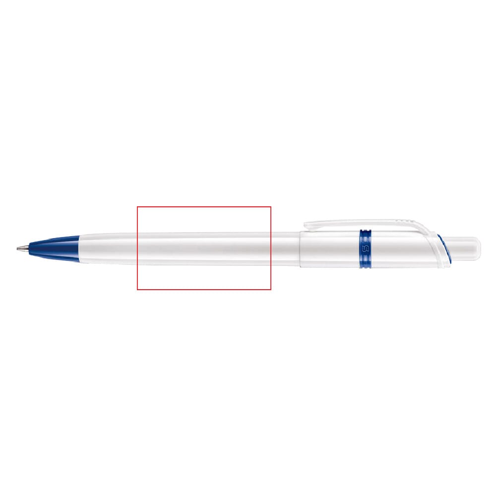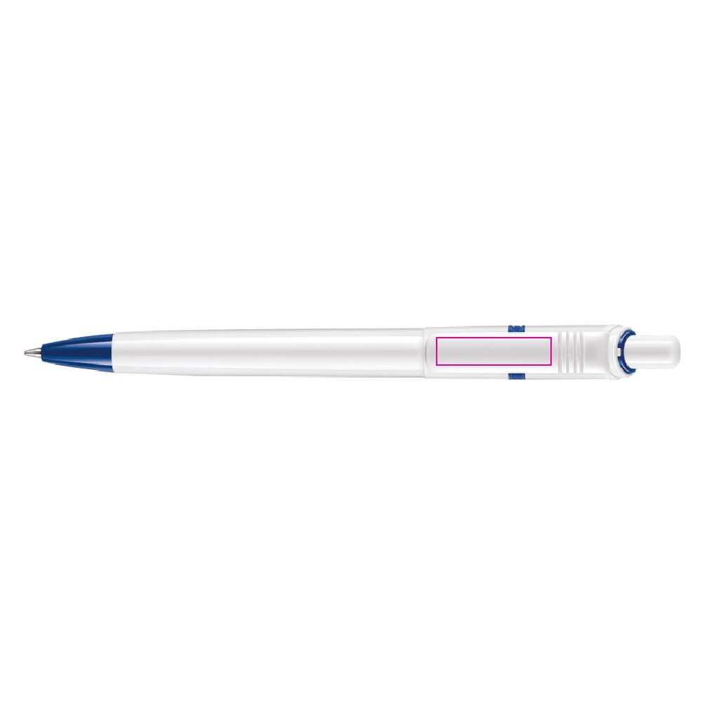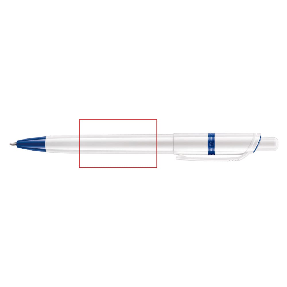 De Ducal balpen is een witte hardcolour balpen met een gekleurde tip. Inclusief een X20 vulling met blauw schrijvende inkt. De pen heeft een drukker mechaniek en is gemaakt van ABS. De pen is geproduceerd in Europa. Kleur combinaties voor deze pen zijn mogelijk vanaf 5.000 stuks.