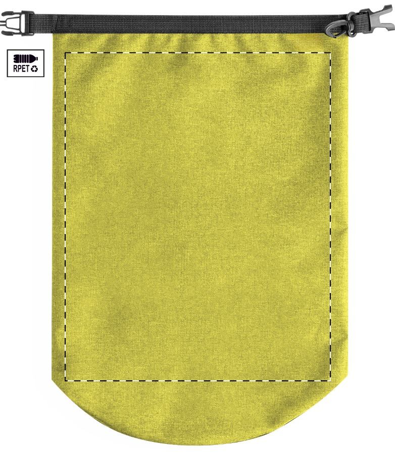 Waterdichte, 300D RPET polyester dry-bag. Met kunststof gesp en karabijnhaak. Capaciteit: 5l.
