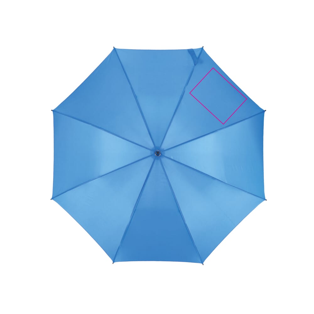 Deze 23" stok paraplu heeft een ergonomisch PP-handvat voor een comfortabele grip en een duurzaam fiberglas frame. Voorzien van automatische opening, is het ideaal voor dagelijks gebruik of als golfparaplu.