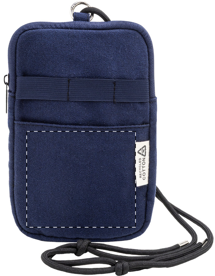 Gerecycleerde canvas crossbody mobiele telefoontas met rits hoofdvak, voorvak en verstelbaar RPET polyester sleutelkoord. 70% gerecycled katoen en 30% RPET polyester. Met onderscheidend gerecycled katoenen label.