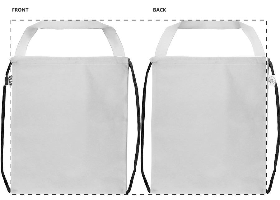 Op maat gemaakte tas met trekkoordsluiting met gekleurde touwtjes en lange hengsels, 190T RPET polyester. Ook te gebruiken als boodschappentas. Met all-over sublimatiebedukkingafische afbeeldingen en onderscheidend RPET-label. MOQ: 25 stuks.