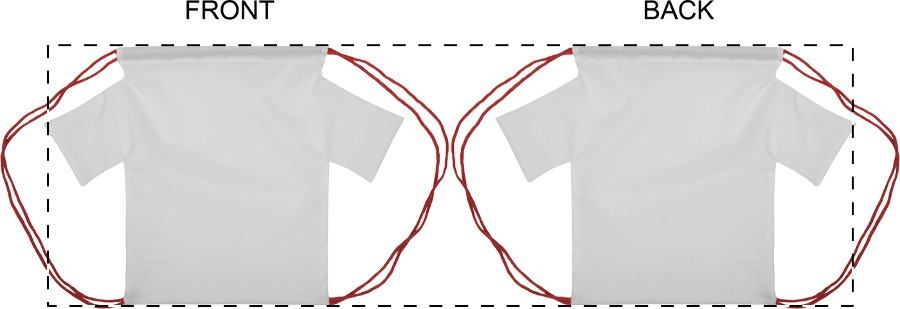 Custom made T-shirtvormige tas met trekkoord en gekleurde touwtjes, 190T polyester. Met all-over sublimatiebedrukking. MOQ: 25 stuks.
