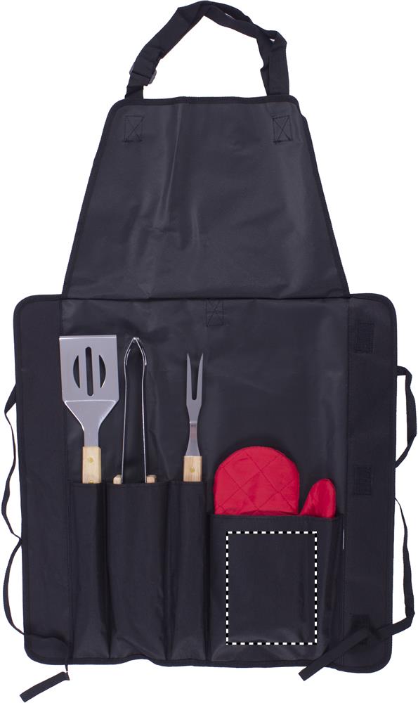 BBQ schort van 600D polyester, handschoen en 3st. BBQ bestek.