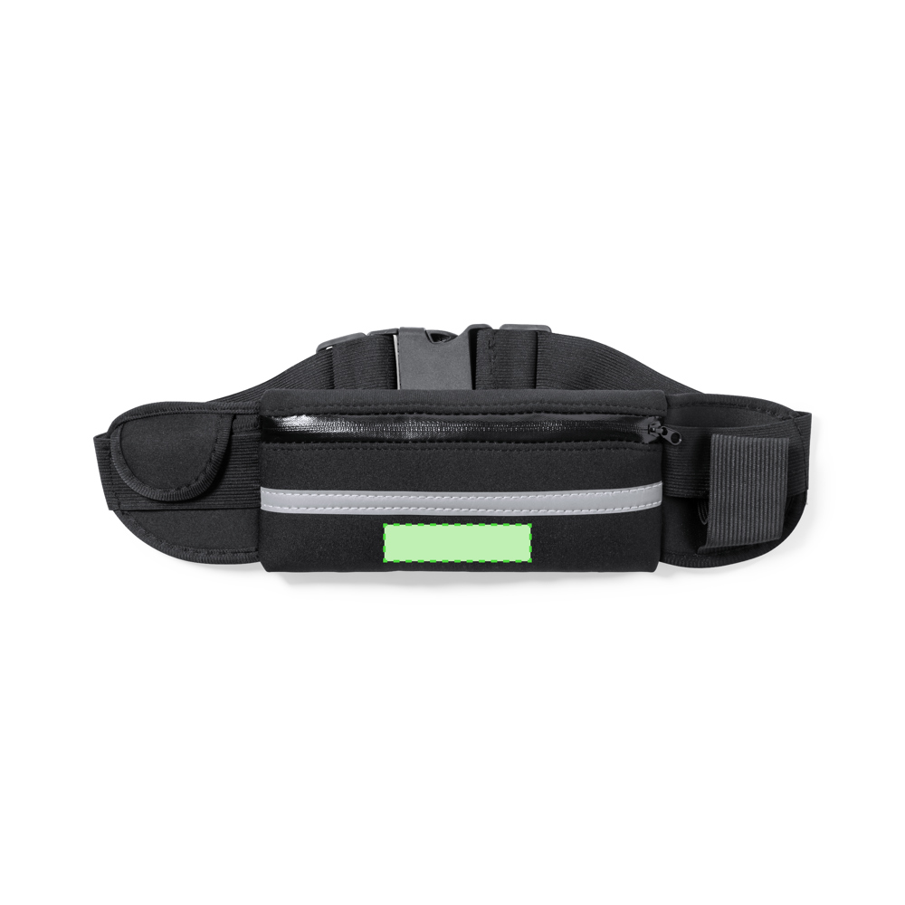 Hoogwaardige heuptas van duurzaam softshell (neopreen), met reflecterende band. Hoofdvak met ritssluiting, elastische flessenhouder en vakje voor sleutels en andere kleine spullen. Met gespsluiting en verstelbare riem, speciaal ontworpen voor sport- en vrijetijdsactiviteiten.
