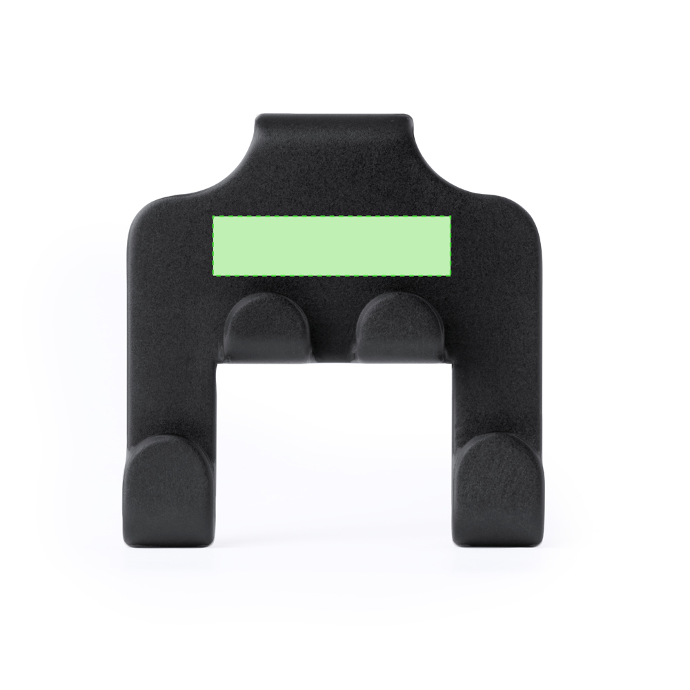 Robuuste houder van ABS. Eenvoudige installatie met behulp van de open haak die is ontworpen om op de hoofdsteun te worden geplaatst, met houder voor mobiele apparaten en twee extra haken voor tassen. Gepresenteerd in een individuele zak.