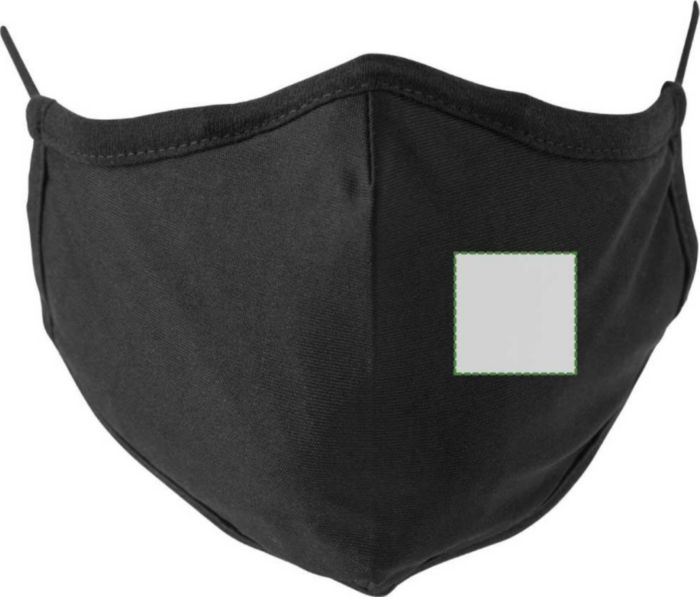 Katoen en polyester, herbruikbaar mondkapje met elastische bandjes en gevormd voor comfort. Het zeven-laags masker (vijf-laags filter met SSMMS filter) heeft een bacteriële filtratie van 95%. Wasbaar op 60 graden. Niet voor professioneel medisch gebruik.