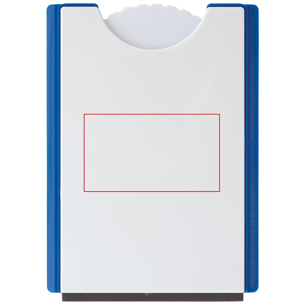 Parkeerschijf met ijskrabber die voldoet aan de Europese wetgevingen (exclusief Frankrijk). Groot bedrukkingsoppervlak op de achterzijde van de ijskrabber.