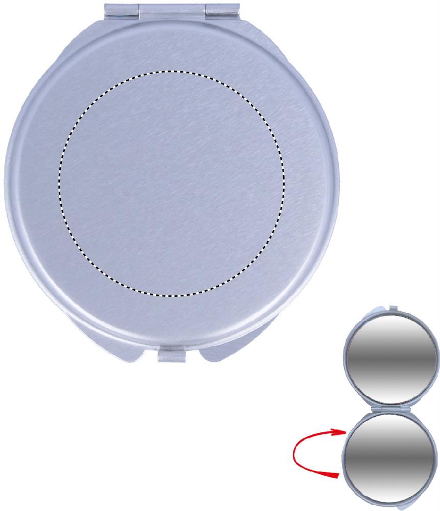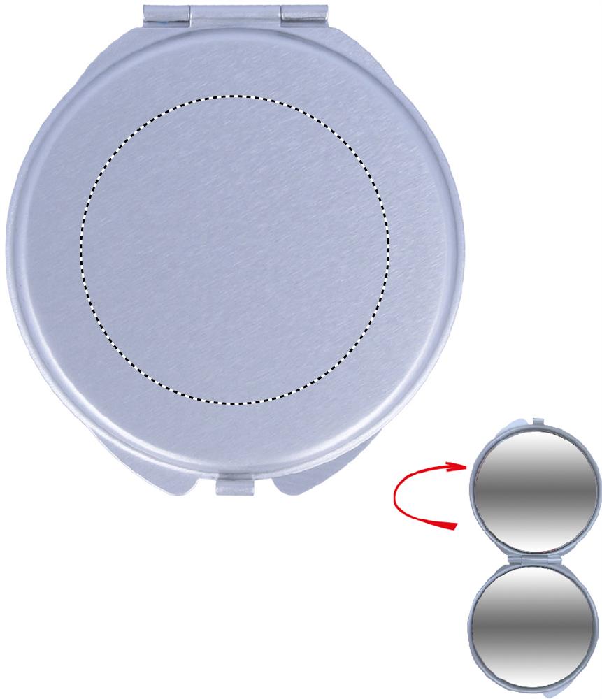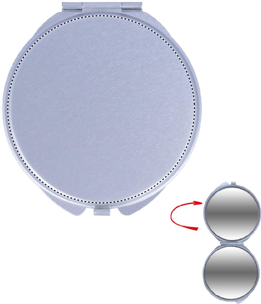 Aluminium make-up spiegel, gewoon en vergrotend, met velours etui.