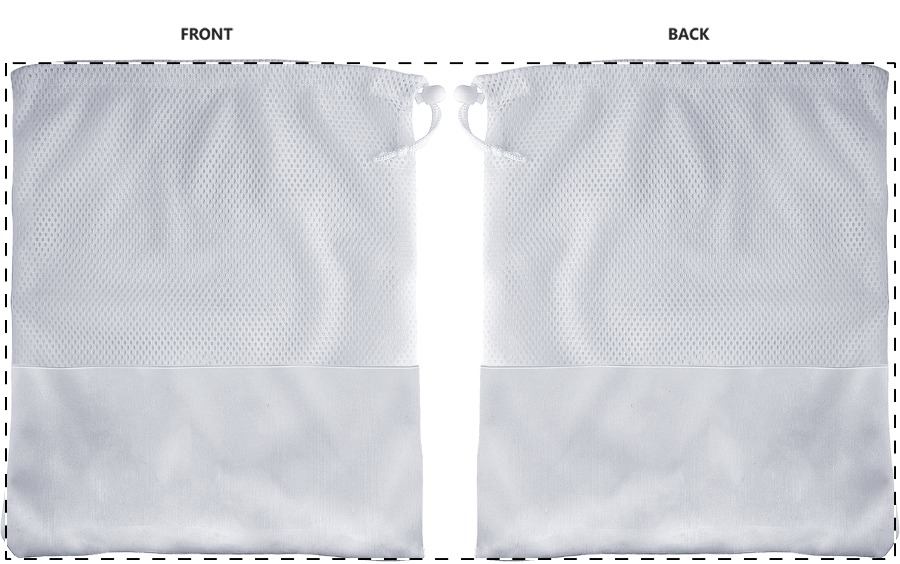 Custom made tas van polyester met een bovenwerk van mesh en een trekkoordsluiting. Met sublimatiebedukking op het onderste deel van de stof. MOQ: 50 stuks.