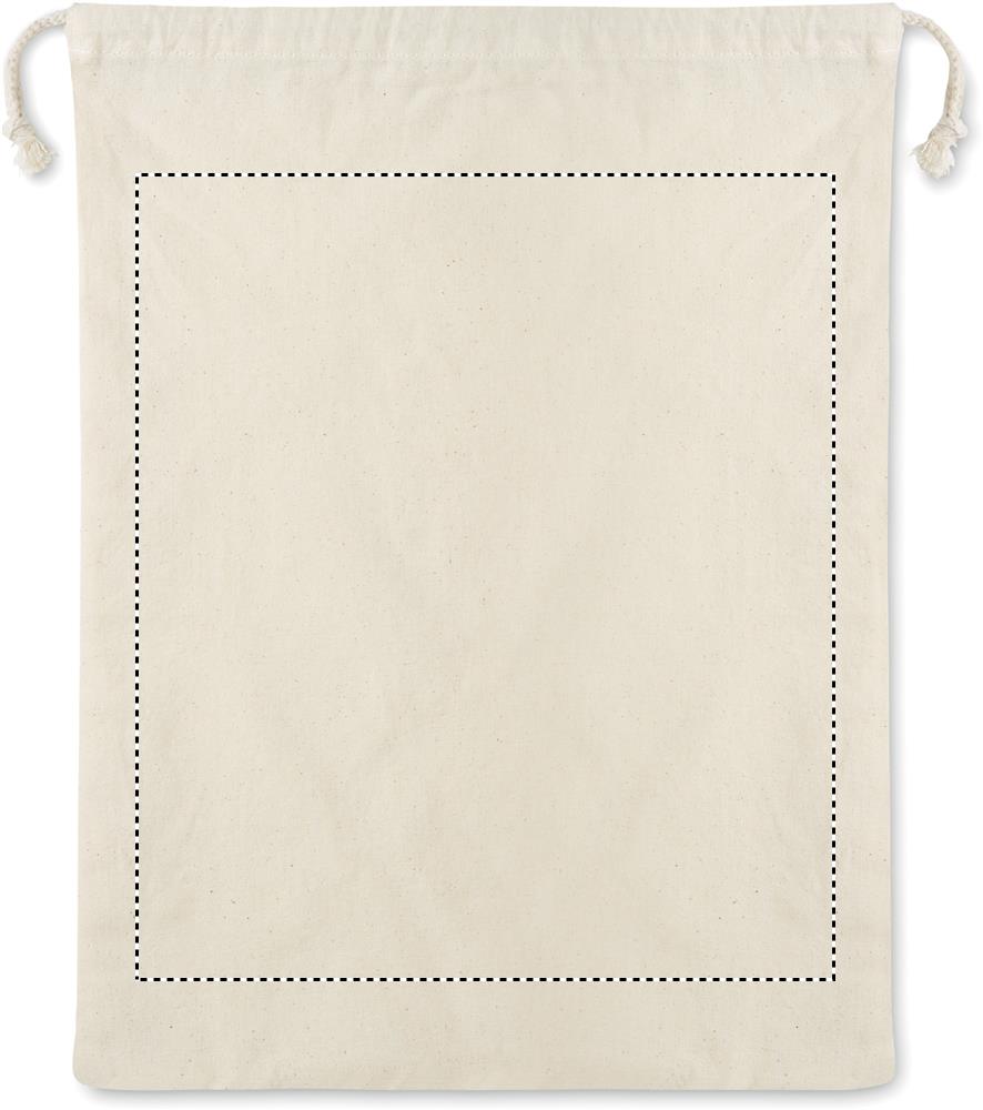 Herbruikbare voedseltas met trekkoordsluiting. Voorzijde is 140 g/m² katoen, achterzijde is van 110 g/m² mesh katoen.