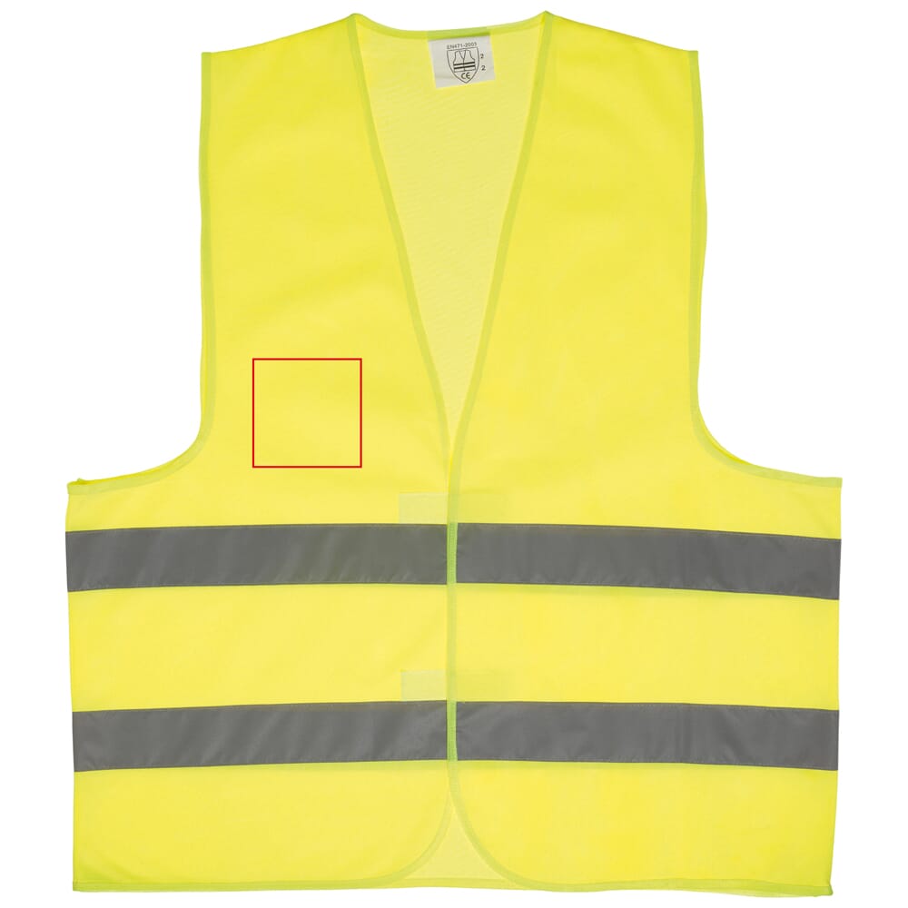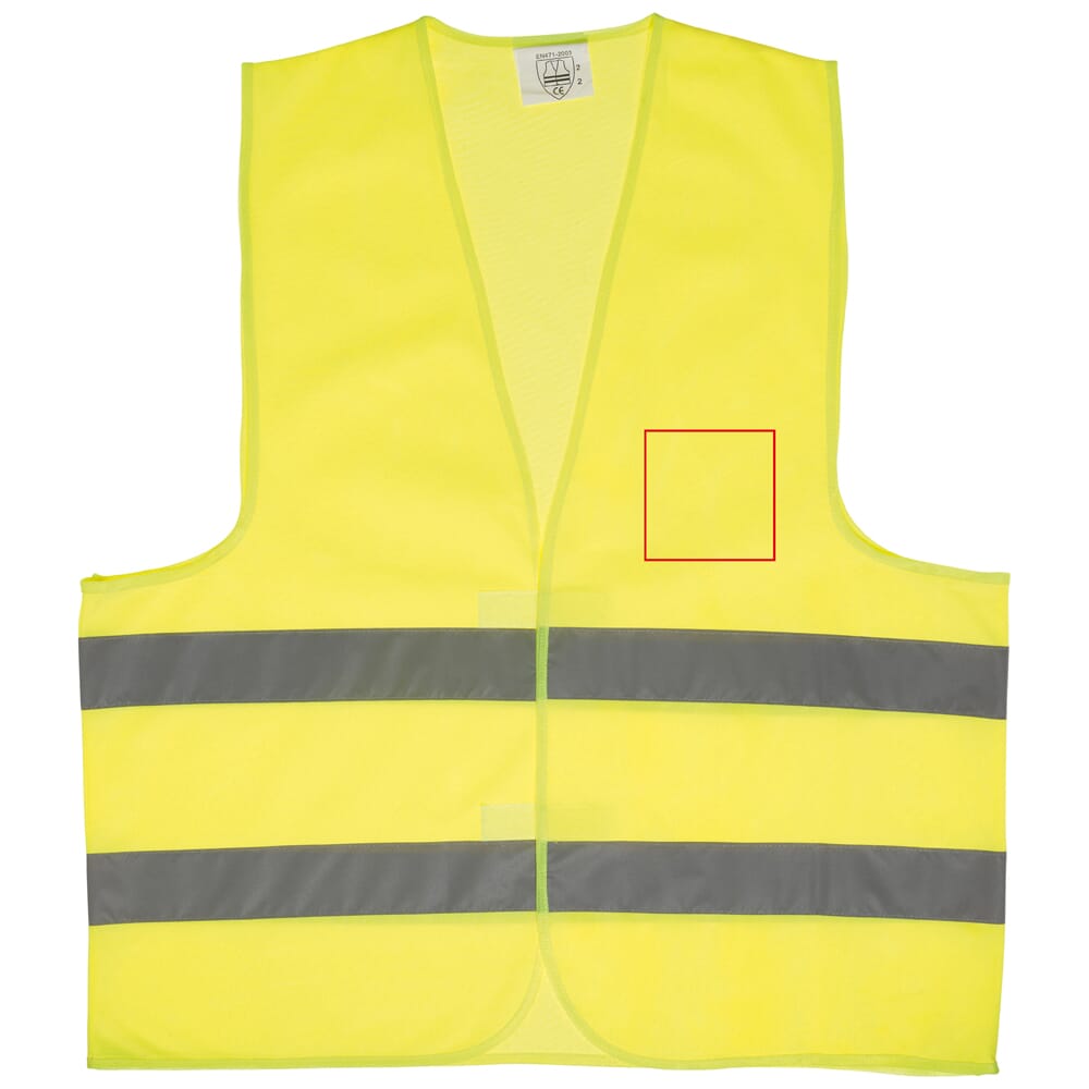 Geel veiligheidsvest voor volwassenen met twee reflecterende strepen en klittenbandsluiting. Gemaakt van stevig maar licht polyester waardoor het hesje comfortabel draagt. Voldoet aan de Europese EN20471 norm, klasse 2/2. Verplicht in de meeste Europese landen.
